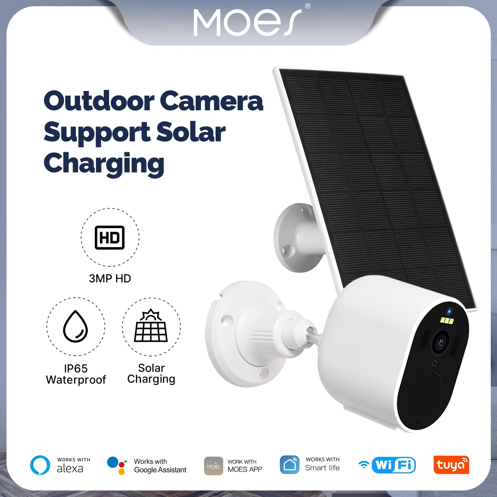 MOES Tuya WiFi 3MP HD Smart Surveillance Security Camera Solar Charging Waterproof Low Power Consumption Full Color Night Vision
