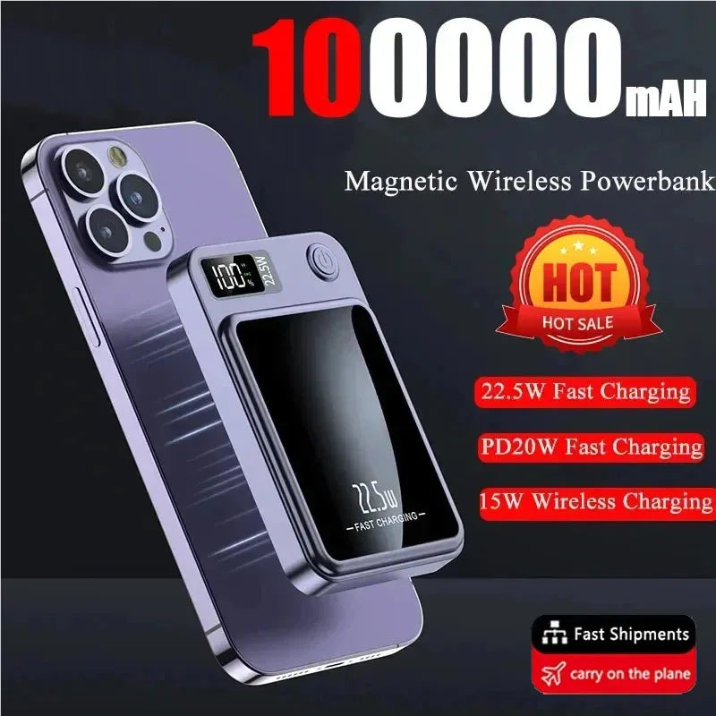 100000mAh Magnetic Wireless Charger Power Bank Digital Display Fast Charging 22.5W Powerbank Portable External Battery Hot