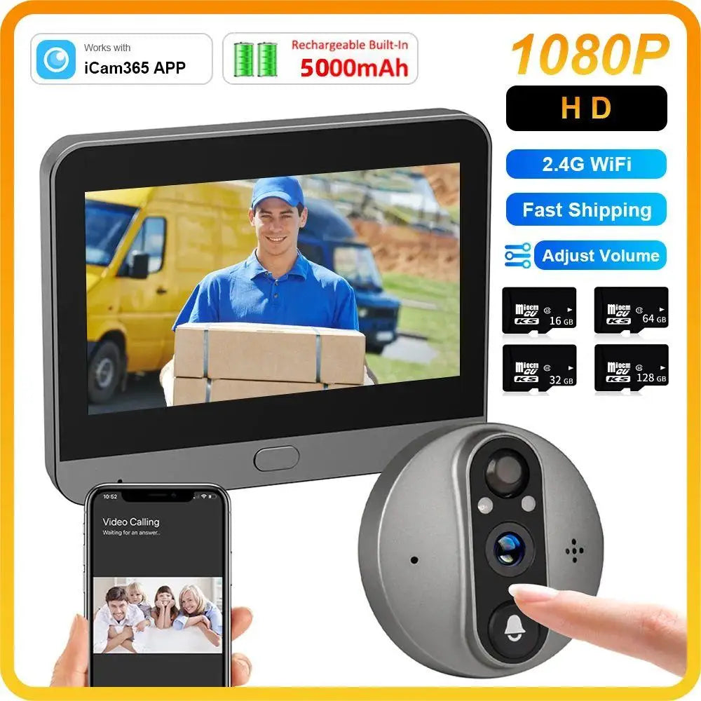 2.4G WiFi Household Doorbell With Camera 4.3 Inch 1080P ICam365 APP 5000mAh Infrared Door Peephole Camera Video Intercom Device