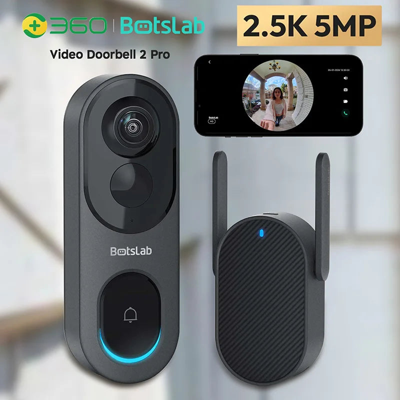 Botslab HDR Video Doorbell Camera WiFi 2.5K 5MP Wireless Two Way Intercom 180°Wide-Angle Night Vision Smart Home Security Camera