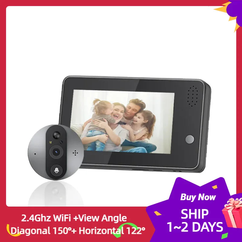 Tuya Smart 1080P WiFi Door Bell Peephole Camera Viewer Home Security Two-way Audio Night Vision 4.3' FHD Video Doorbell Camera