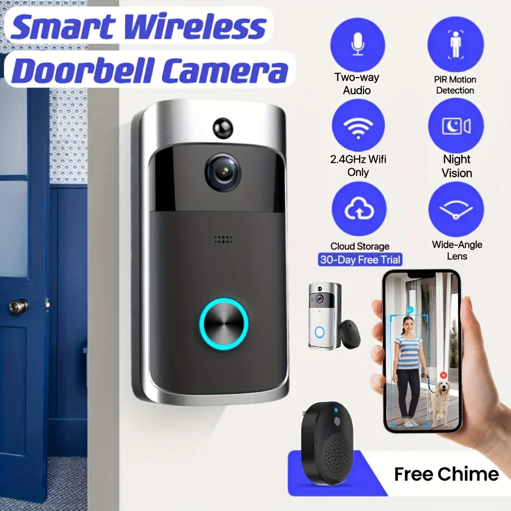 Smart Home Doorbell Camera WIFI Intercom With Cloud Storage, WIFI Video Doorbell, Night Vision, 2-Way Audio, Battery Powered