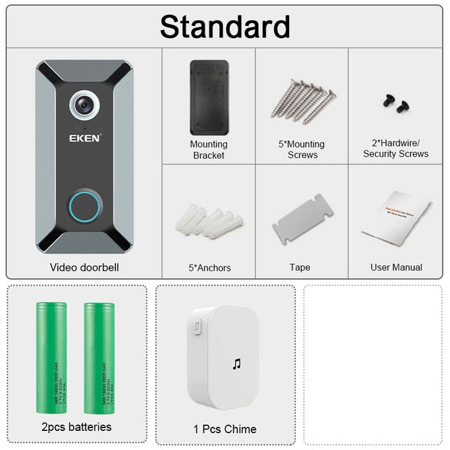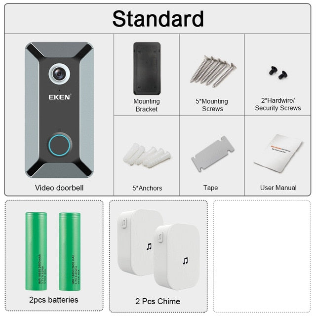 Precio habitual A partir de $46.74 USDPrecio de oferta A partir de $46.74 USD Precio habitualPrecio unitario por$0.00 USDOferta AgotadoEspecificaciones: Energía: Batería seca Tipo de conexión: inalámbrica Tipo de artículo: Timbre con vídeo PíxelesLente: 140 gran angular Visión nocturna: 6 piezas de luces LED infrarrojas...