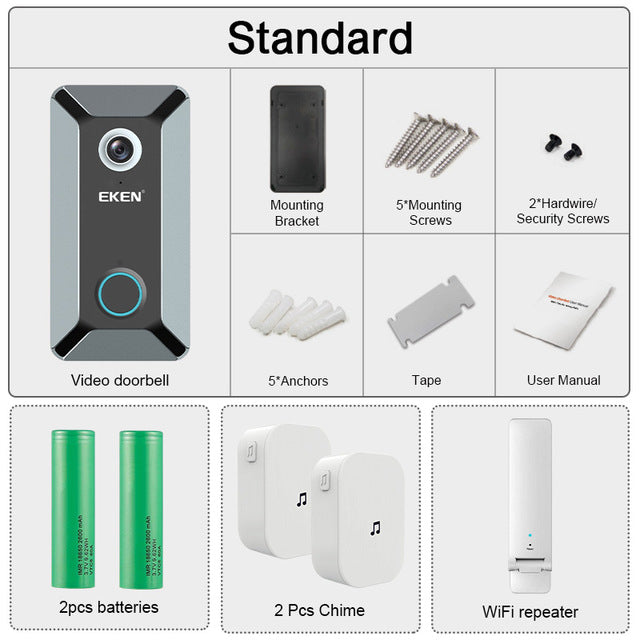 Precio habitual A partir de $14.46 USDPrecio de oferta A partir de $14.46 USD Precio habitualPrecio unitario porOferta AgotadoSPECIFICATIONSBrand Name: ONENUOOrigin: Mainland ChinaConnection Type: WireLessPower: Electric SupplyFeature: NoneItem Type: VIDEO DOORBELLSmart home platform: TuyaItem: Video DoorbellSmart home platform: Tuya Smart Smart lifeConnection Type: WirelessBattery:...