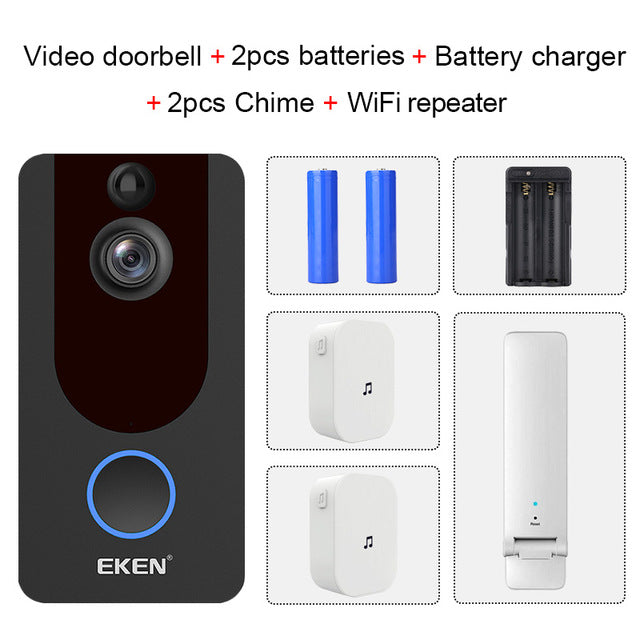 WIFI Video Doorbell Camera Night Vision HD Wireless Smart Home Security Battery Door Bell Two Way Intercom Voice Change For Home