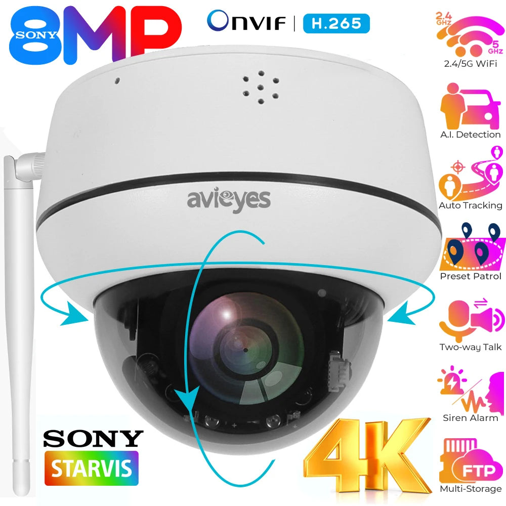 New 4K 8MP Wifi Metal Dome PTZ Camera Outdoor Humanoid Tracking IP Camera Indoor 2-way Audio H.265 Wireless Surveillance Cameras