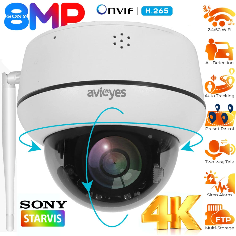 4K 8MP Wifi Dome PTZ IP Camera Outdoor Human/Vehicle Detection Auto Tracking Security Cameras 2-way Audio Wireless Indoor Camera