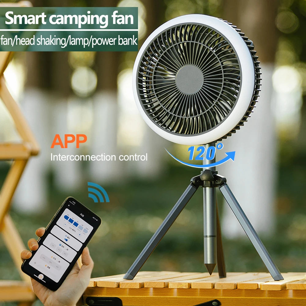 APP Smart Camping Fan With Power Bank Lamp USB Rechargeable Wireless Electric Fans Portable Ceiling Air Cooling for Tent Wall