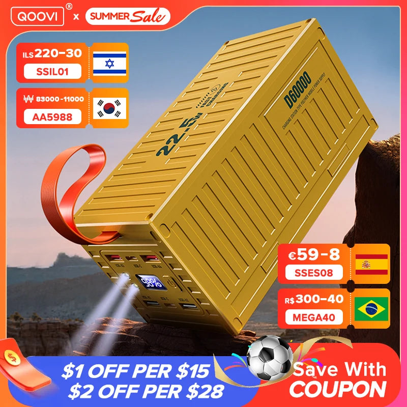 QOOVI 60000mAh Power Bank 22.5W PD QC 3.0 Charger Powerbank Large Battery Capacity Power Station Fast Charging For iPhone Xiaomi